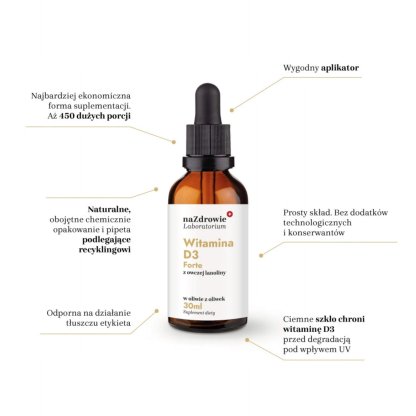 Suplement diety od naZdrowie z witaminą D3 pochodzącą z lanoliny, zawartą w oliwie z oliwek, stanowi wyjątkowy produkt o wielu korzystnych właściwościach.